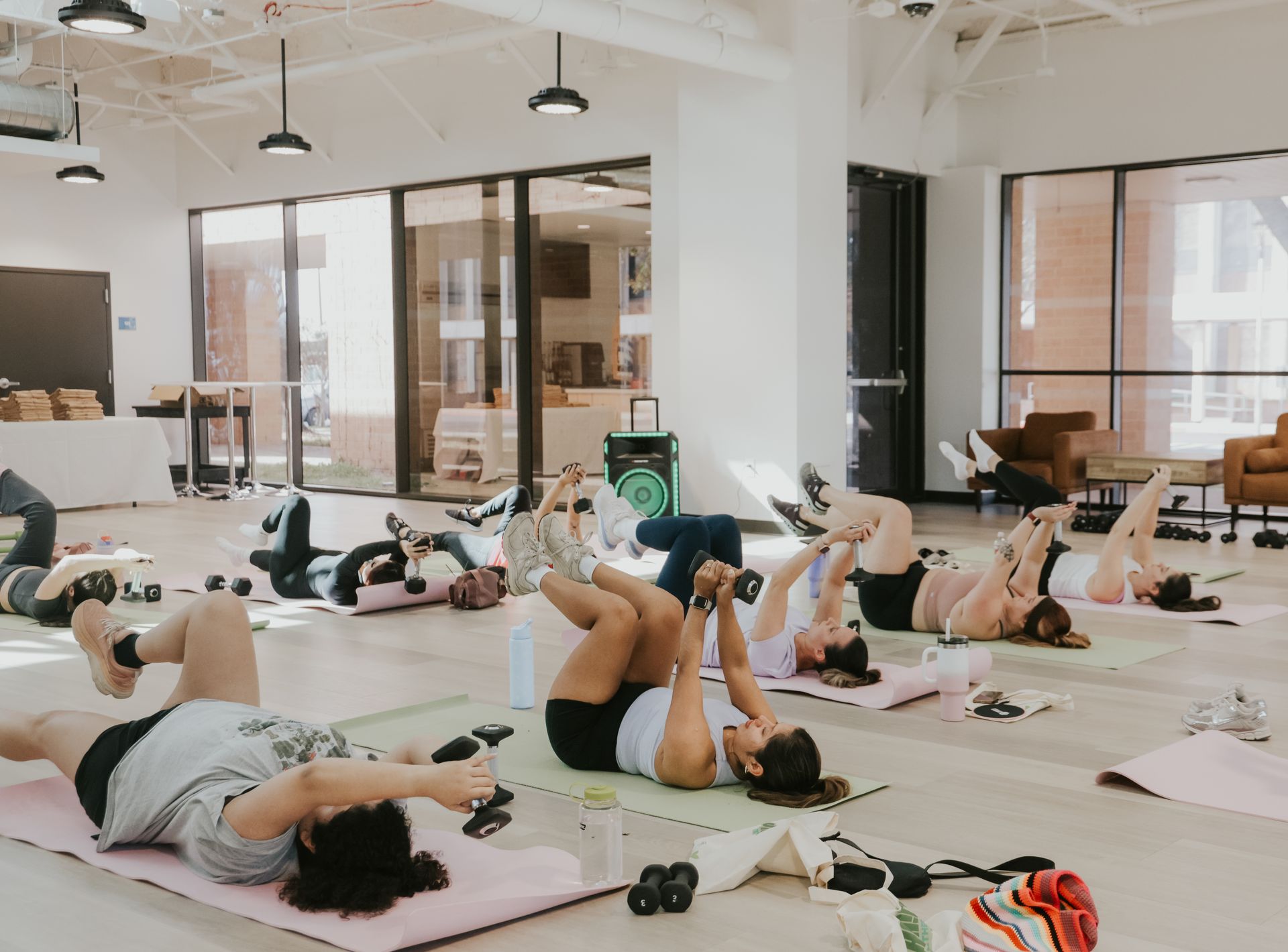 A fitness class led by an instructor for groups of 5 to 25 participants. Pricing varies based on location and event coordination.